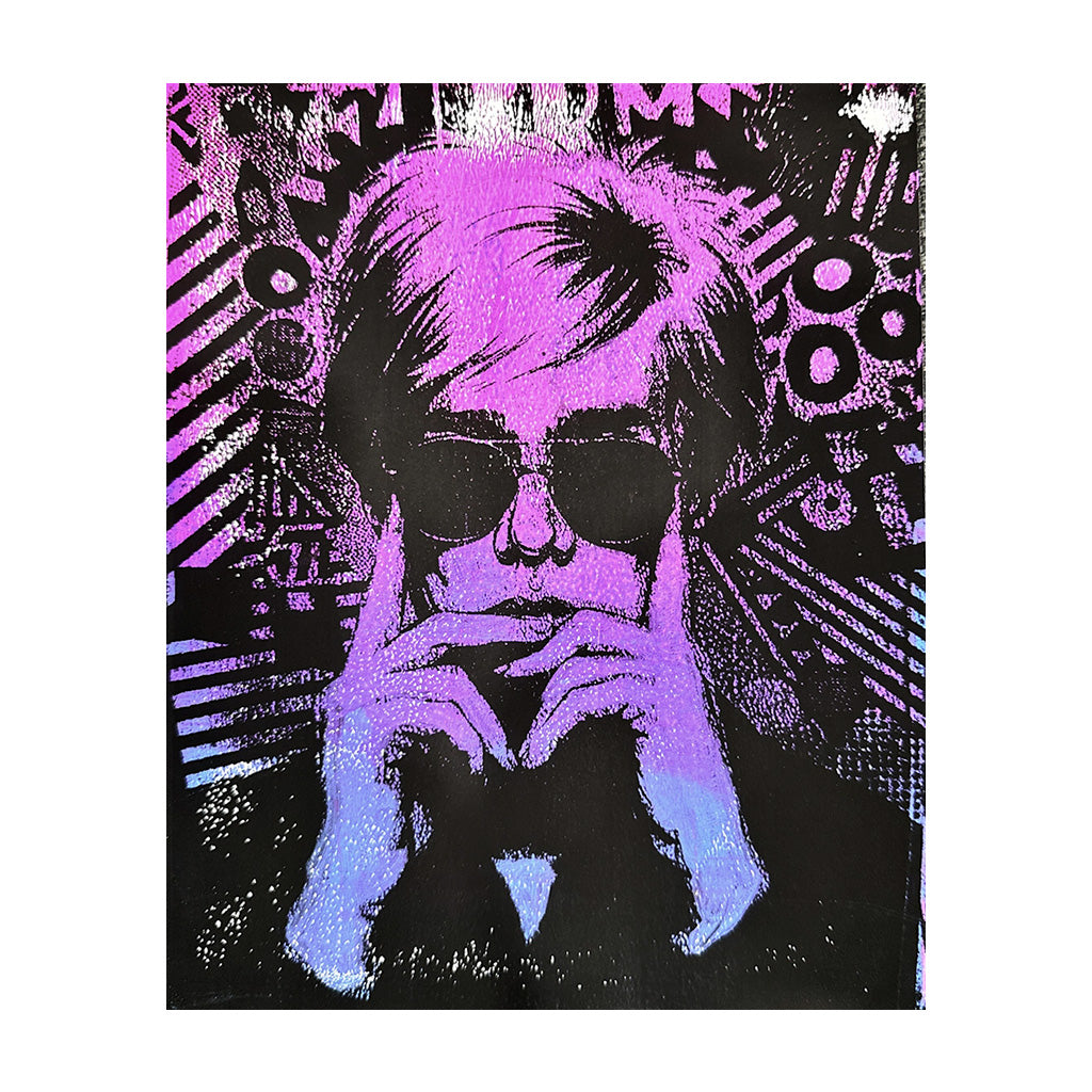 "Electric Muse" radiates with pop energy and luminous intrigue, capturing a striking figure enveloped in vibrant waves of purple and blue across a dramatic black backdrop. This piece, brought to life with the gelli print technique, is truly one-of-a-kind—each creation is formed by blending colors and layering stencils onto a gelatin plate, then pulling a single, unrepeatable print. The result is an explosion of unexpected gradients and textures, making every gelli print artwork as unique as a creative spark frozen in time.