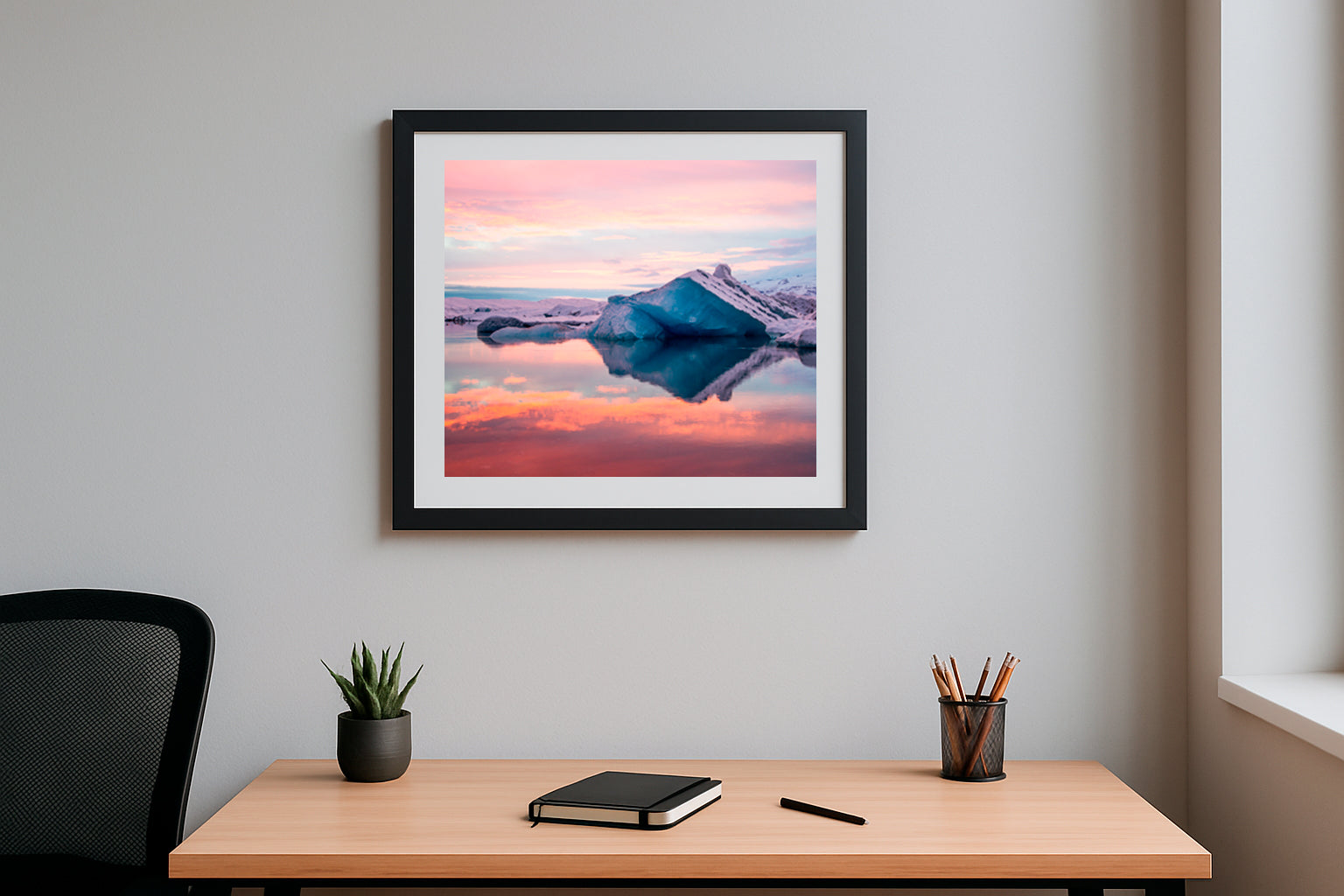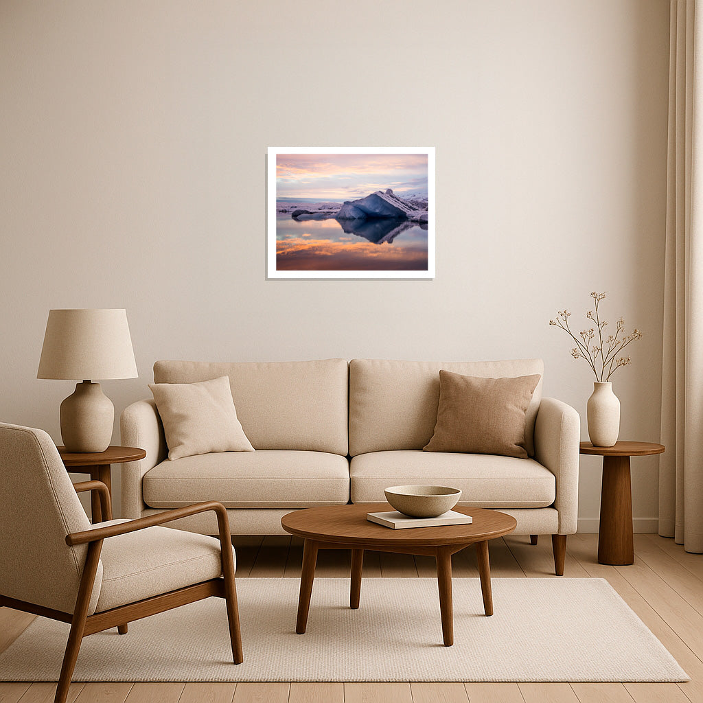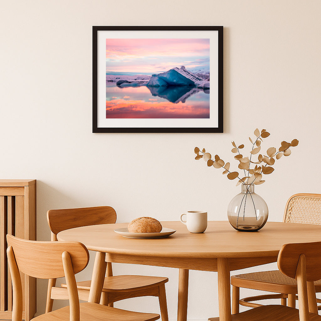 Imagine sitting at your dining table, the soft glow of evening light reflecting off a breathtaking landscape—icy blues and fiery skies merging in perfect harmony. This image isn’t just a window to another world; it’s a reminder of nature’s quiet power and the beauty that awaits beyond our daily routines. Let it spark your conversations, inspire your dreams, and bring a sense of wonder to every meal