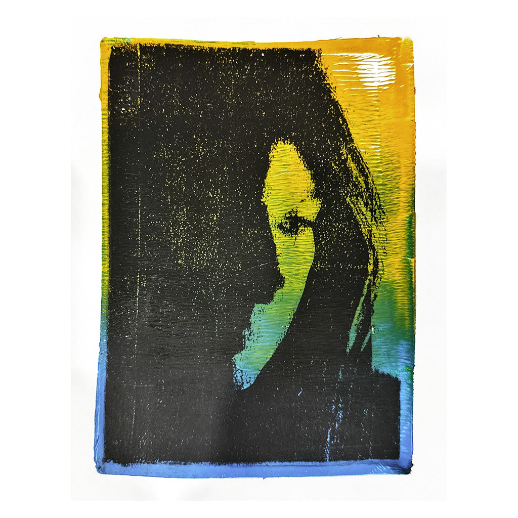 "Luminous Muse" is a tribute to the enduring beauty and mystique of women, captured through the singular process of gelli printing. Each brush of color—radiant yellows melting into tranquil blues—converges with bold, deep shadows to unveil a figure at once strong and ethereal. The spontaneous marks and rich textures unique to this print-making technique ensure that this piece remains utterly inimitable. The result is a visually striking, one-of-a-kind portrait celebrating feminine grace, individuality, and the quiet power radiating from within.